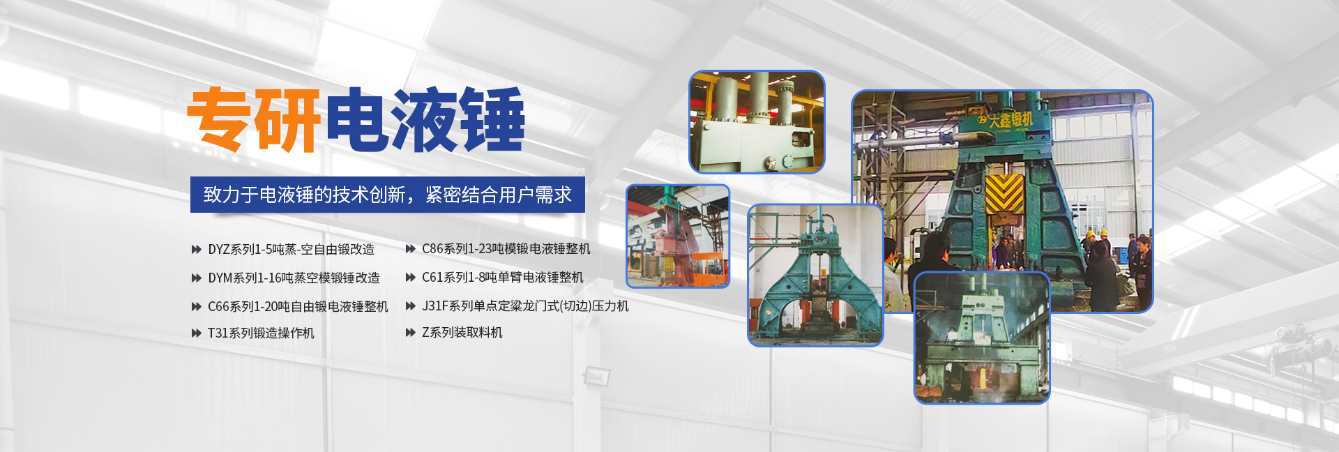 安陽市大鑫重機(jī)環(huán)保設(shè)備有限公司(原福士德),是一家專注研發(fā)生產(chǎn)電液錘的高技術(shù)企業(yè),隸屬安陽市殷都區(qū)企業(yè),企業(yè)創(chuàng)辦人研制電液錘已有二十多年歷史,積累了豐富的經(jīng)驗(yàn)和技術(shù),使產(chǎn)品技術(shù)始終處于國內(nèi)水平,并已生產(chǎn)銷售近百臺電液錘,受到用戶廣泛好評。企業(yè)座落在享有“鍛錘之鄉(xiāng)”的安陽市殷都區(qū)——安姚路東段。廠區(qū)占地面積20畝,車間建筑面積3000多平萬米。企業(yè)現(xiàn)有正式員工177人,其中工程師3人,工程師及以下職稱工程技術(shù)人員19人。企業(yè)設(shè)有“六部四車間(公司)”,即銷售部、管理部、技術(shù)部、質(zhì)保部、制造部、工程部、財(cái)務(wù)部;鉚焊車間、機(jī)加工分公司(輝縣市億豐重工有限公司)、裝配車間。擁有主要加工和檢測設(shè)備二十多臺(套)。企業(yè)主導(dǎo)產(chǎn)品為系列電液錘及輔機(jī):DYZ系列1-5噸蒸-空自由鍛改造DYM系列1-16噸蒸空模鍛錘改造C66系列1-20噸自由鍛電液錘整機(jī)C86系列1-23噸模鍛電液錘整機(jī)C61系列1-8噸單臂電液錘整機(jī)J31F系列單點(diǎn)定粱龍門式(切邊)壓力機(jī)T31系列鍛造操作機(jī)Z系列裝取料機(jī)產(chǎn)品“單一”的企業(yè)特點(diǎn)凸顯企業(yè)“專注”電液錘研發(fā)的顯著特色。這一特點(diǎn)是基于企業(yè)自身情況下的企業(yè)頂層設(shè)計(jì)理念;規(guī)模定位“中而強(qiáng)”,技術(shù)瞄準(zhǔn)“特而新”,產(chǎn)品必須“專而精”。技術(shù)創(chuàng)新是企業(yè)發(fā)展的導(dǎo)向。多年來,企業(yè)始終專注于電液錘的技術(shù)創(chuàng)新,緊密結(jié)合用戶意見和要求,不斷升級產(chǎn)品技術(shù)水平,例如,對系統(tǒng)進(jìn)行全方位優(yōu)化設(shè)計(jì),進(jìn)一步提高設(shè)備節(jié)能效果;對系統(tǒng)主要性能參數(shù)進(jìn)行數(shù)顯改造升級,提高設(shè)備的可操作性;對“氣-液”系統(tǒng)進(jìn)行優(yōu)化設(shè)計(jì),使錘能夠發(fā)揮打擊能量;對“專用閥”系統(tǒng)進(jìn)行優(yōu)化設(shè)計(jì),降低液阻,提高操作靈活性;對“錘桿密封”系統(tǒng)進(jìn)行“巧妙”設(shè)計(jì)并選用進(jìn)口密封件,大幅度提高密封壽命……質(zhì)量保證是企業(yè)的生命。技術(shù)創(chuàng)新為產(chǎn)品質(zhì)量保證打下堅(jiān)實(shí)的基礎(chǔ)。同時(shí)企業(yè)始終貫徹“ISO9001:2000質(zhì)量管理體系“的“大質(zhì)量”觀念,各部門以“質(zhì)量程序文件”為指導(dǎo),齊抓共管。用每個(gè)人的工作質(zhì)量,來保證過硬的產(chǎn)品質(zhì)量。質(zhì)檢部門實(shí)行“工序道道必檢,零部件件件必檢”的工作原則,既不能讓不合格零部件流入下工序,更不能讓不合格件出廠。采購部門實(shí)行“貨比三家,價(jià)高必須優(yōu)質(zhì)”的原則,嚴(yán)格保證外購件具有高的“性價(jià)比”。質(zhì)量檢驗(yàn)的“原始記錄”為每個(gè)零部件建立了檔案,保證產(chǎn)品質(zhì)量的“可追溯性”。用戶服務(wù)是企業(yè)的良心。我們把“急用戶之所急,想用戶之所想”當(dāng)做企業(yè)的良心來以一貫之。用“換位思考”(假如我是用戶)的理念替用戶著想,并做到“及時(shí)、高 效、全 面”地為用戶服務(wù),確保“顧客滿意率達(dá)到95%以上。正所謂“金獎銀獎,不如用戶夸獎”。胸懷《道德經(jīng)》,“大鑫”行天下。企業(yè)一貫堅(jiān)持“文化興企”的管理理念,蓄他人之長,集團(tuán)隊(duì)智慧,以超前的思維,不斷賦予企業(yè)文化新的內(nèi)涵。在國家工商總局注冊的“大鑫”牌商標(biāo),賦予其深刻的文化內(nèi)涵(大信問天,大道致遠(yuǎn);錘煉金典團(tuán)隊(duì),鑄金質(zhì)品牌,健步金光大道。),為自己的產(chǎn)品和服務(wù)打上了誠信的印記,走出了一條“用文化品牌戰(zhàn)略,企業(yè)不斷發(fā)展?fàn)畲蟆钡某晒χ贰0碴柺挟?dāng)屬歷史文化名城,七大古都之首,殷商文化發(fā)源地。旅游景點(diǎn)精彩呈現(xiàn):殷墟博物院、中國文字博物館、曹操高陵、袁世凱陵、岳飛廟、馬氏莊園、紅旗渠、太行大峽谷……安陽市位于河南省北部,是京廣鐵路、京珠高鐵、京珠高速、107國道的經(jīng)由城市。南距鄭州機(jī)場200公里,北距邯鄲機(jī)場40公里。交通十分便捷。熱忱歡迎新老用戶蒞臨我公司考察指導(dǎo)!